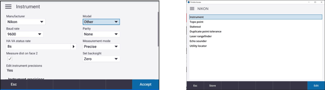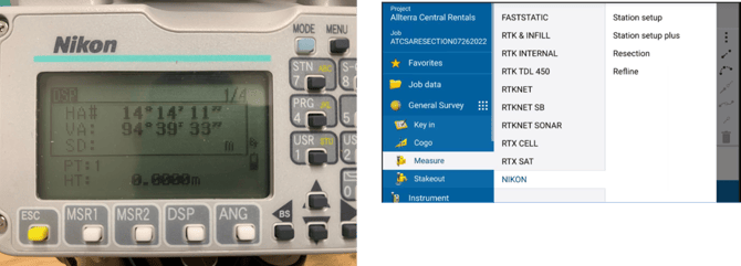 - In Trimble Access on the data collector, select Measure, Nikon survey style and then Station Setup or Resection as needed