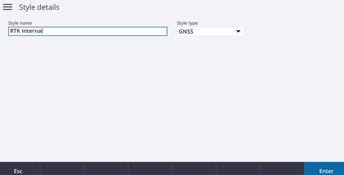 • Name the Survey Style and select GNSS for Style Type and accept at the bottom.
