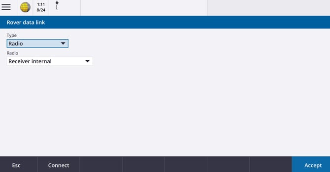 • Select Edit on Rover Data Link – Select Radio for Type and Receiver Internal for Radio. Select connect when complete.