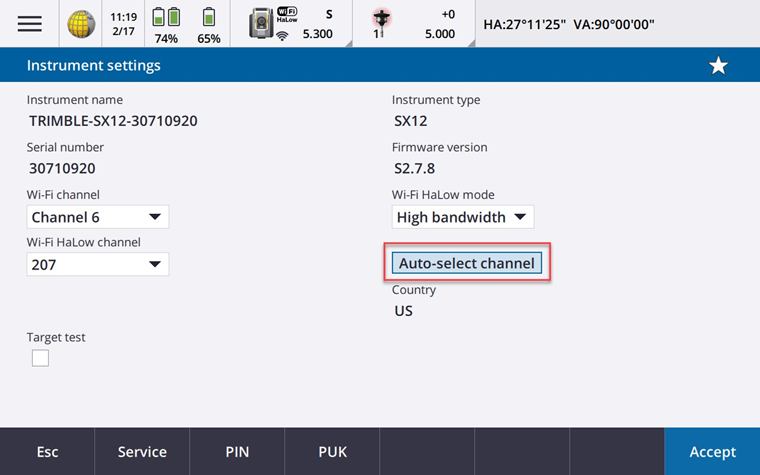 - There are 3 preconfigured options to choose from: Channel 1, 6 and By default, the instrument operates on Channel 11. Tap “Accept” to set the new channel.