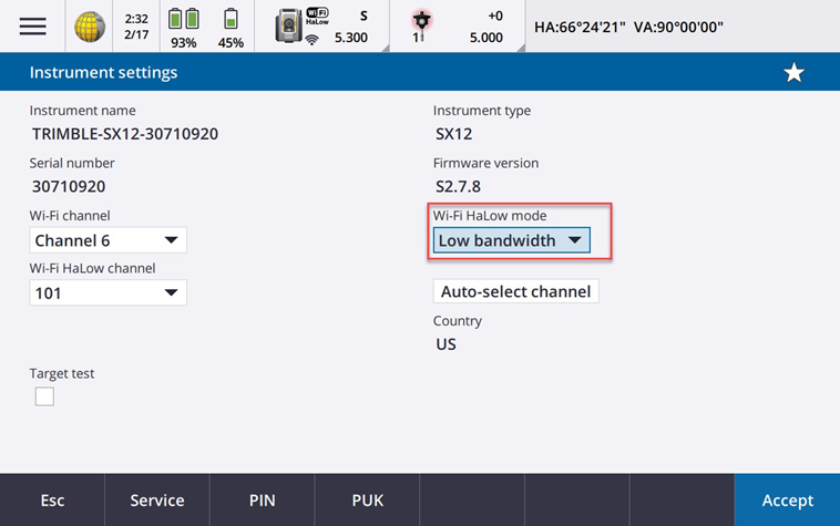 Password protection is introduced with the release of SX12 firmware version S2.8.4 and Trimble Access field software version 2023.00. These versions of firmware and software, or later, must be used in conjunction to utilize password protection.