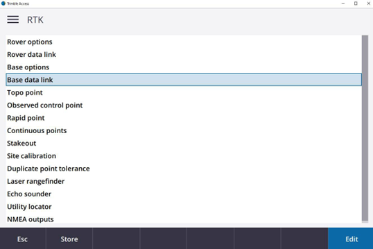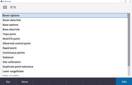 Ensure you are Bluetoothed to your Rover before you go into your Rover Radio settings (See Bluetooth Manual on website for Bluetooth information)* If you exit the Survey Styles, make sure you click the “STORE” Button before you escape*