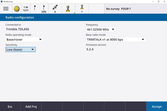 In this example, we are configuring the survey style using an R12 receiver and a TDL450 radio. So some settings may vary depending on the equipment you are working with.