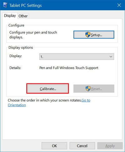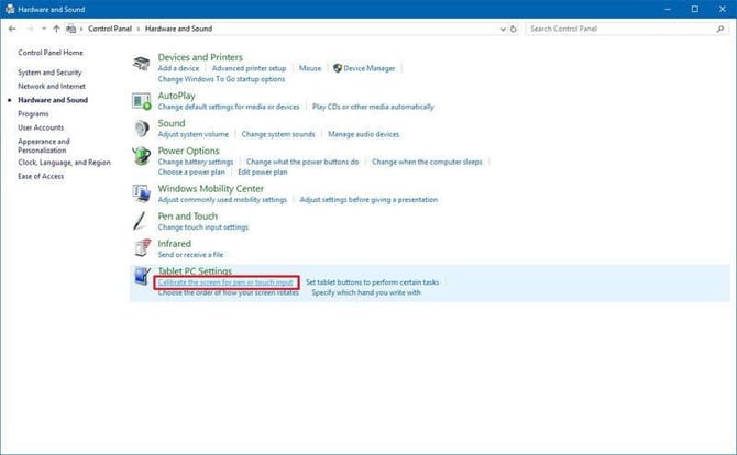 - Under "Tablet PC Settings," click the Calibrate the screen for pen or touch input