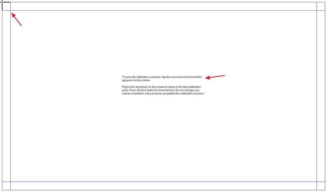 7. In the white screen, tap the crosshair each time that it appears on the Warning - Do not change the resolution during this process